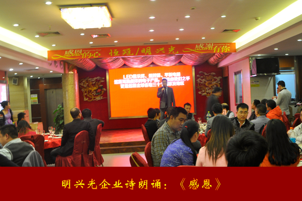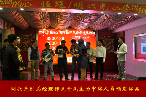 2014年12月31日晚18:15分,明興光元旦聯(lián)歡晚會在石巖街道旺閣漁村隆重舉行,明興光、恒冠電子企業(yè)領(lǐng)導(dǎo)以及全體職員近200人參加了晚會。