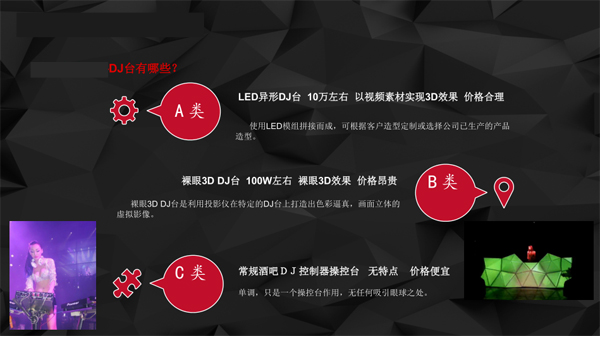 A類:LED異形DJ臺 10萬左右 以視頻素材實(shí)現(xiàn)3D效果 價(jià)格合理