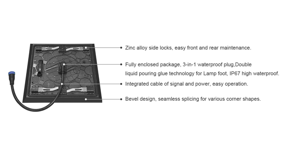 鋅合金側(cè)鎖,信號(hào)線電源線一體化,斜角設(shè)計(jì),實(shí)現(xiàn)轉(zhuǎn)角設(shè)計(jì)無縫拼接